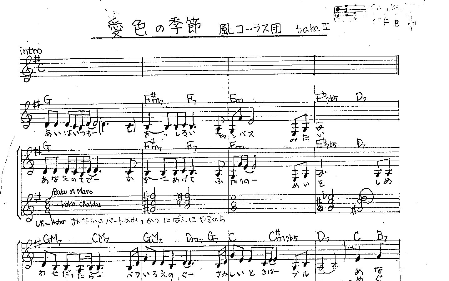 とくに、、CM7 のところは、add9にして4声でハモる。