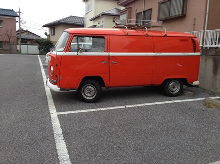 先日お話した地元のカフェ店オーナー所有のワーゲンバスだ。