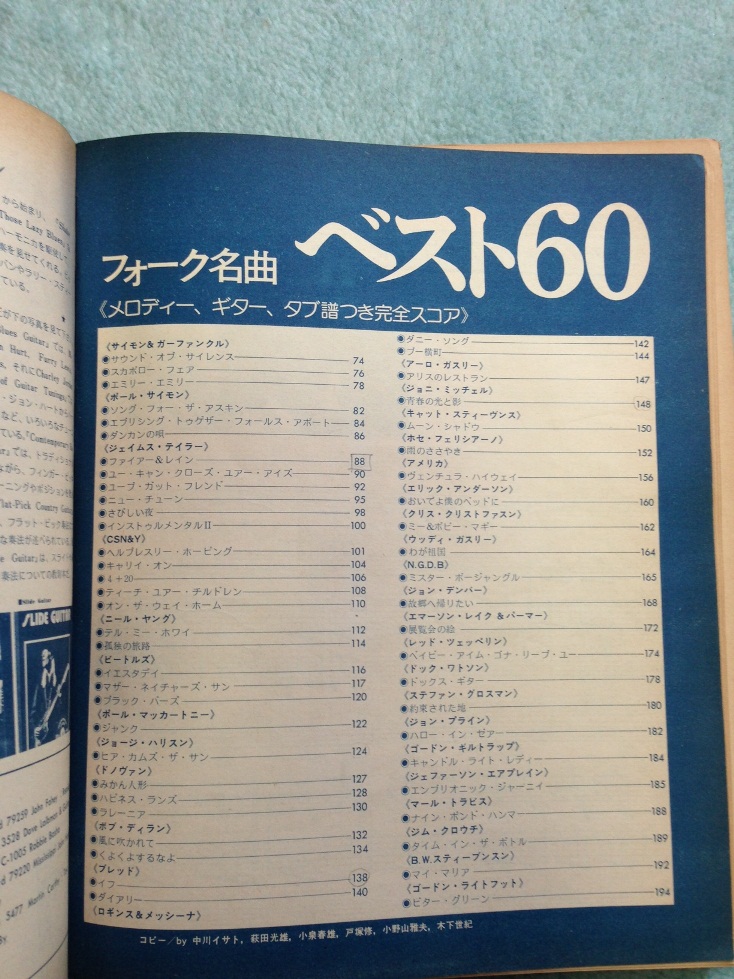 フォークソング特集とは書いてあるけど、ロックの名曲も多数掲載。
