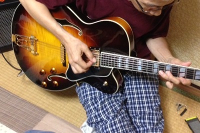 1弦の12フレットあたりから上を弾くと、ピックアップ本体と