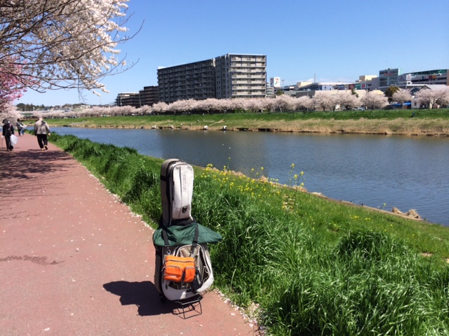 川沿いの遊歩道は満開の桜に誘われた人達でたくさん。