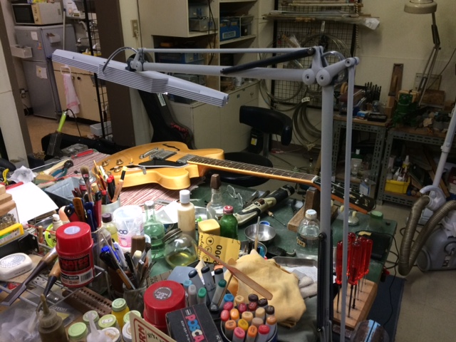 セミアコのメンテを、いつものリペアショップに