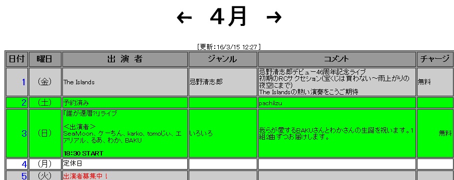 一応、オープンなライブなようなので、出演者を見て