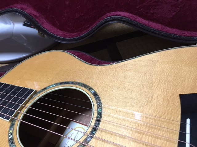 デザインはテイラーギターお馴染みのピックガードなんだけど、