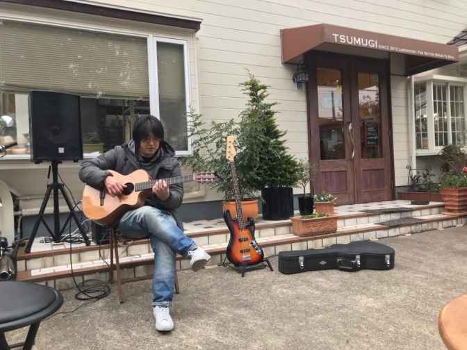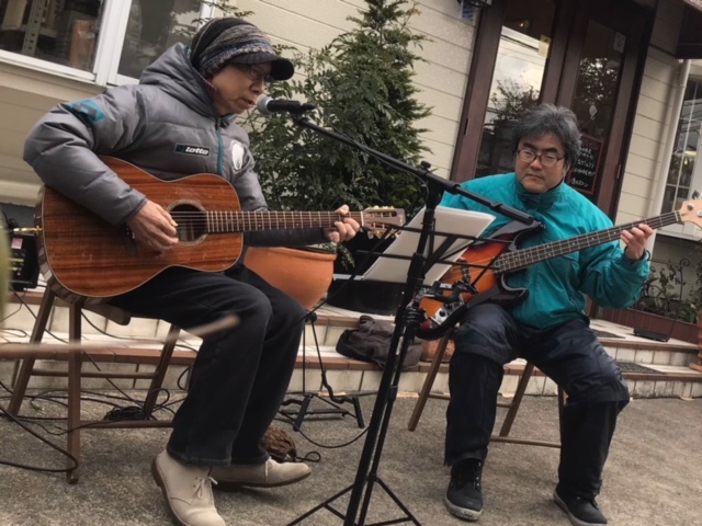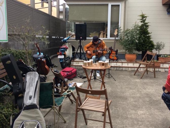 簡易PAを使い、近隣に気を使いながらの演奏。