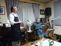 写真は噺場恒例、マスターの締めの挨拶。