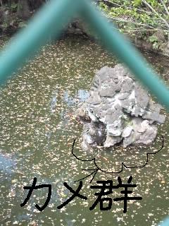 とりわけカメのみなさんが中州?の上に群がっている様子は、